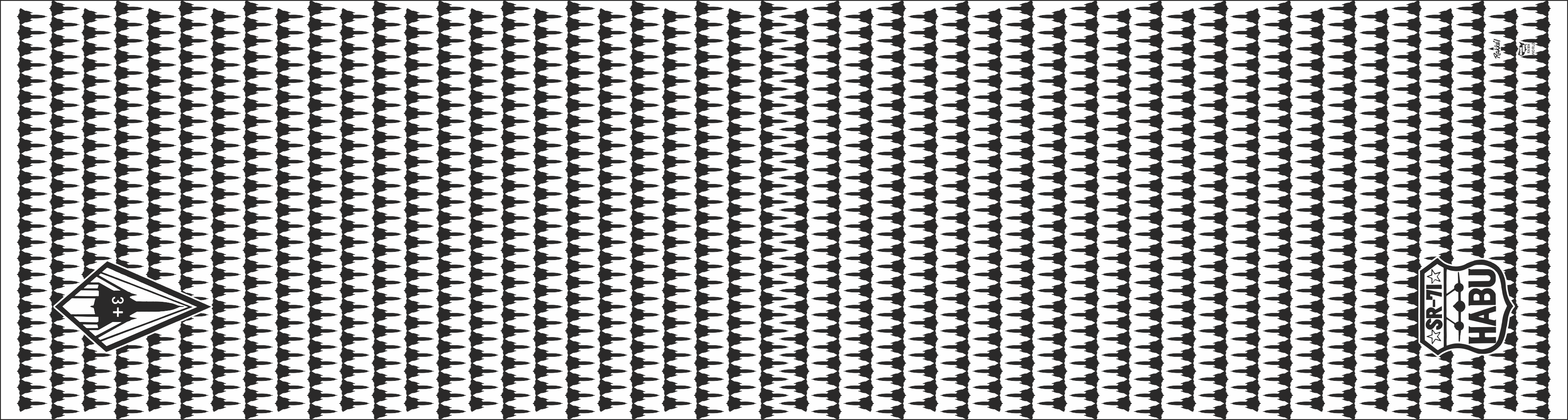 Beale AFB 1 SRS White Scarf with "SR-71" black silhoutte aircraft pattern along the Body of the Scarf. Backside: "SR-71" Patch on one end, "HABU" Patch on the opposite end. Size: 6" x 48".