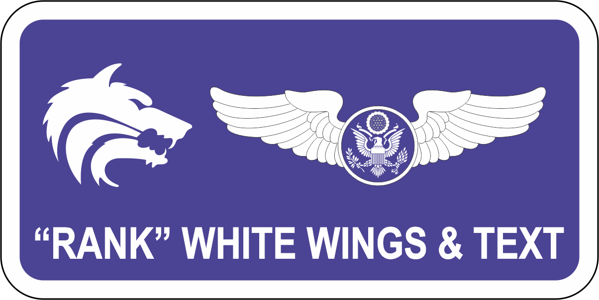 AFJROTC Timber Creek High School Name Tag- Purple Background, White Border, White Wings & Text, White Logo - Staff - One Line of Text