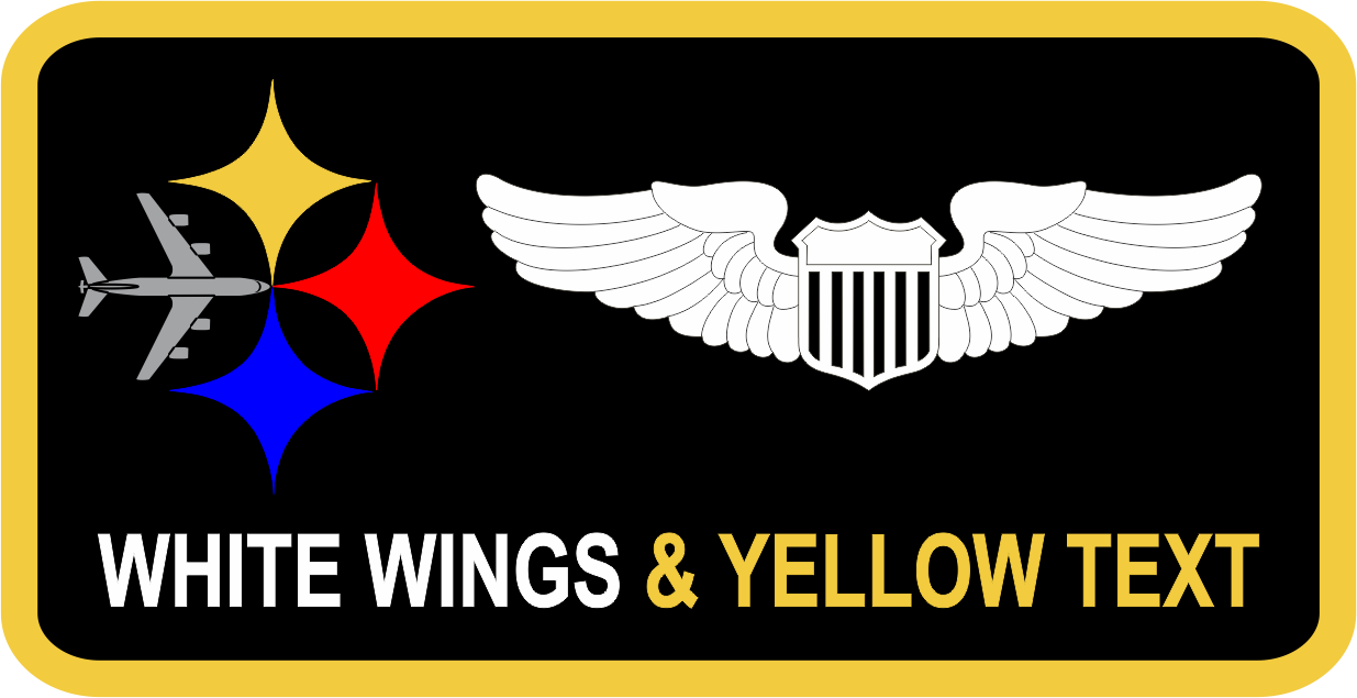 Pittsburgh ANG 171 ARW Name Tag - Black background, yellow border, white wings and yellow text with the Steelers logo and KC-135 aircraft