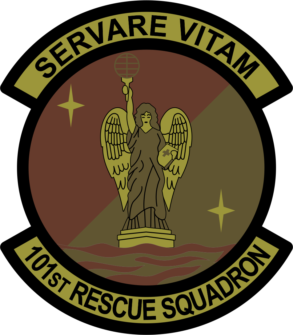 New York ANG 101 RQS Servare Vitam Patch - Brown Background, Black Border & Text, Olive & Bagby Winged Angel with Light - OCP 101st Rescue 3.5" with velcro