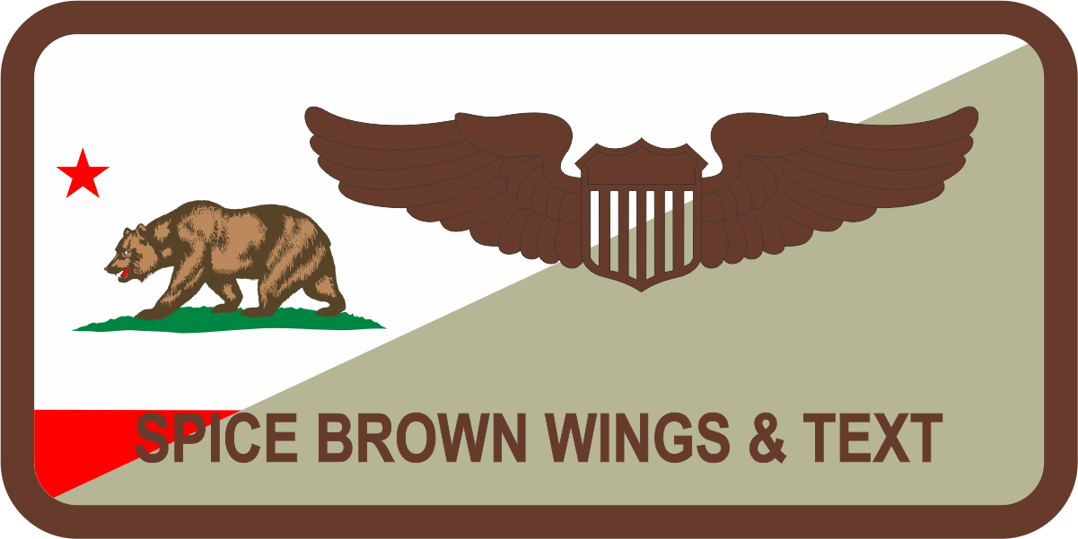 California ANG 115 AS Name Tag - Half White with Cali Bear with Star, Half Tan Background, Brown Border, Wings & Text with Optional Leather Backing