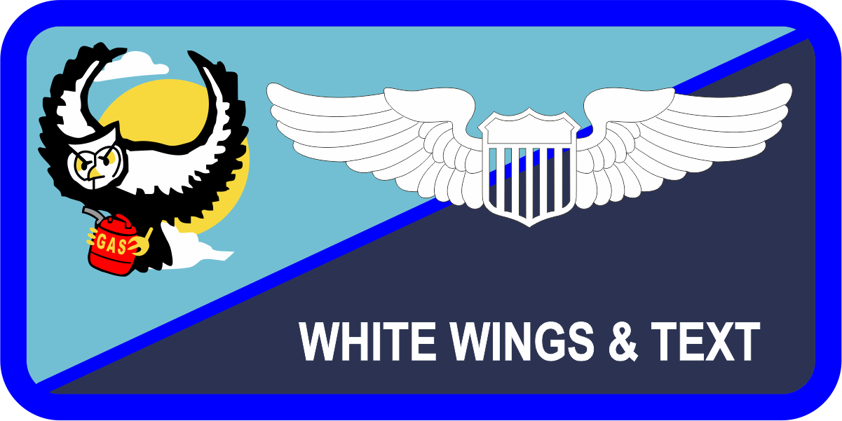 Forbes Field KS ANG 117 ARS Name Tag - Half Navy, Half Lt Blue Background, Blue Border, White Wings & Text, Owl with Sun Logo