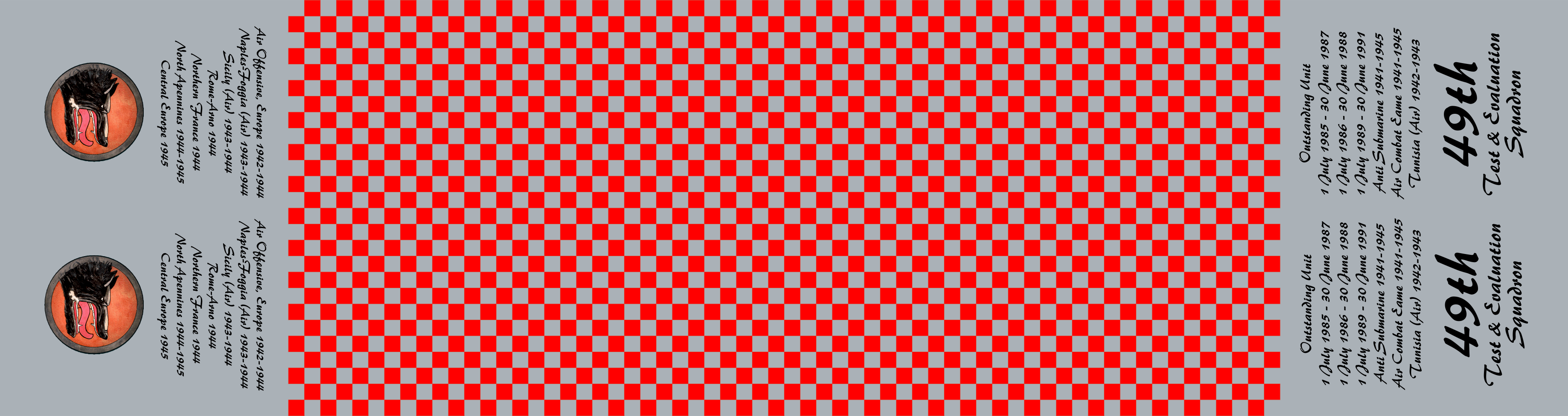 Barksdale AFB 49 TES Flight Scarf - Red and Gray checkerboard Scarf with Wolf Patches on one end and Outstanding Units on both ends. Scarf Size: 6"x48"