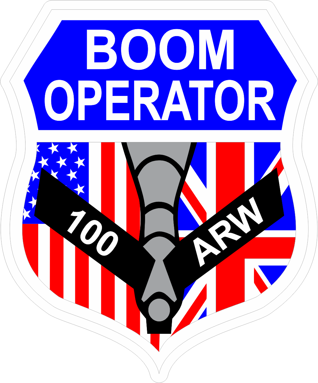 RAF Mildenhall 100 ARW Boom Operator Full Color - Red, White, Blue, Black & Gray-- White Border Patch 4"