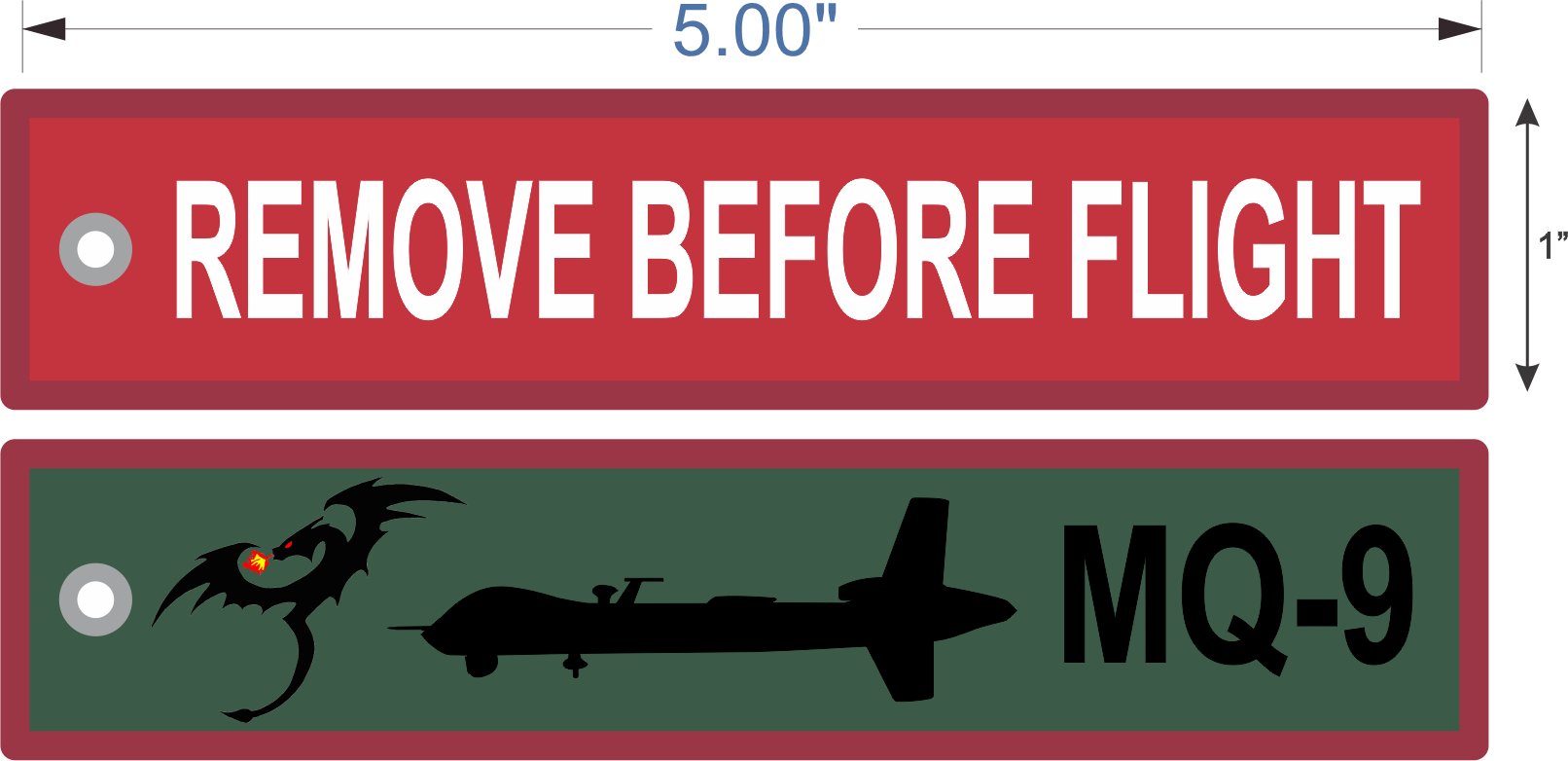 Cannon AFB 3 SOS - Key Chain - One Side Red "Remove Before Flight" Other Side Green MQ-9 Text and Aircraft Dragon Logo
