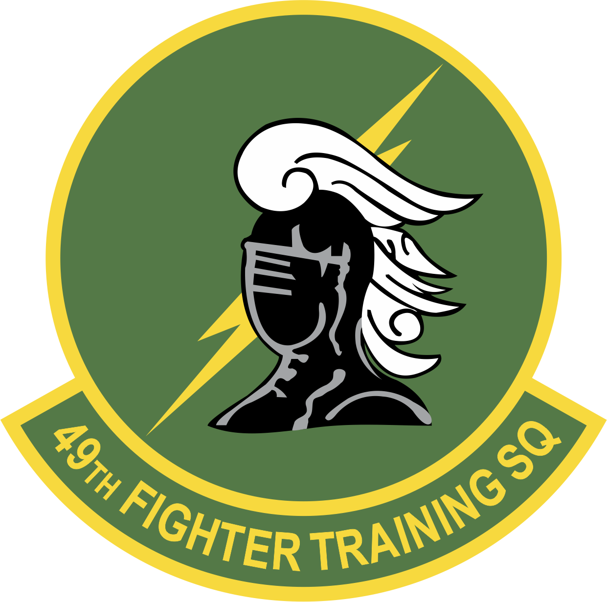Columbus AFB 49 FTS Black and Gray Knight, Dark Green Background, Yellow Border & Text 4"