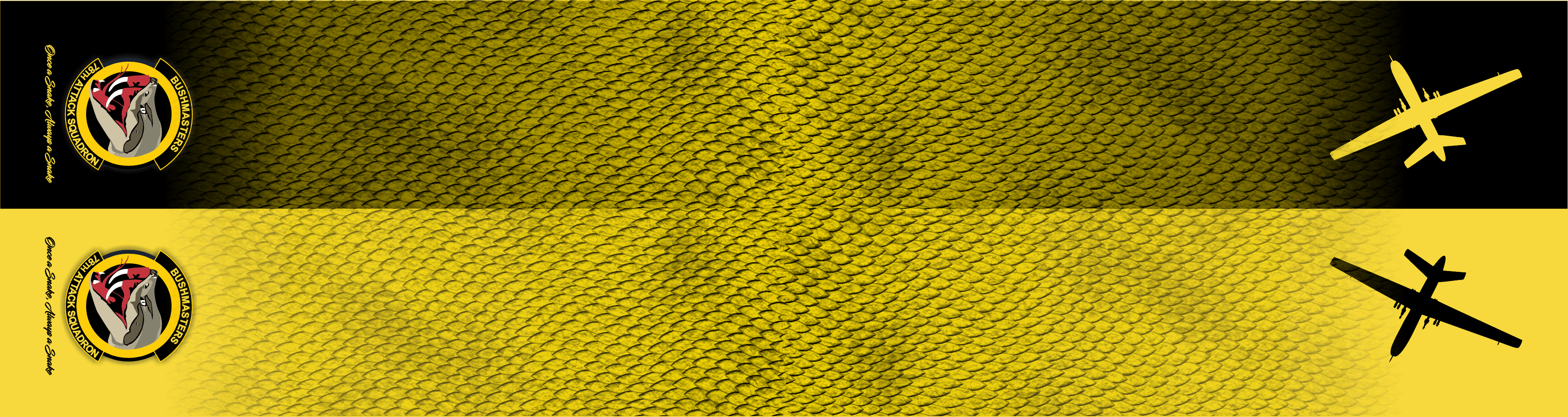 Creech AFB 78 ATKS Flight Scarf - Yellow/Black Background, Yellow Snake Print with Patches on the End, MQ-9 Aircraft on One Side
