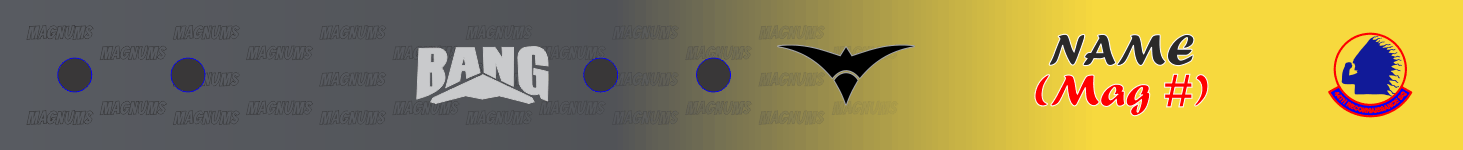 to Yellow Fade Bag Tag with "MAGNUMS" Text Fading to the Right, "Bang"