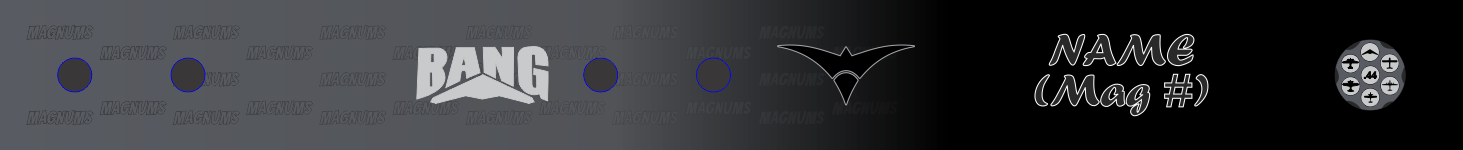 to Black Bag Tag with "MAGNUMS" Text Fading to the Right, "Bang"