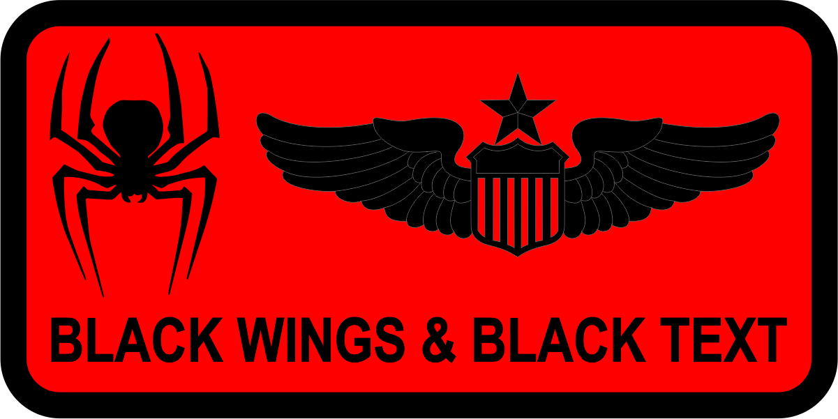 Creech AFB OGW Name Tag - Red Background, Black Border, Black Spider, Black Wings & Text
