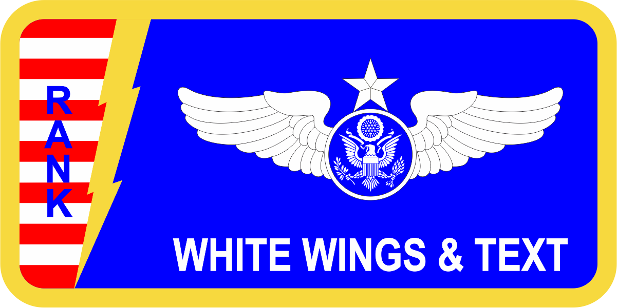 Creech 91 ATKS- Name Tag - AF Blue Background, Yellow Border with Red & White Stripes, Yellow Lightning Bolt, Some Folks Will Have Rank on the Left of Tag