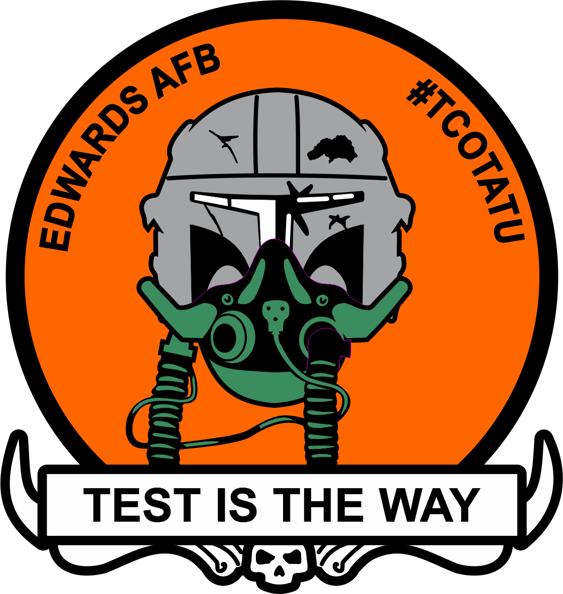 Edwards AFB 412 TW - Test Is The Way - Orange Background, Gray/Green Helmet Full-Color Patch 4" with velcro - #TCOTATU