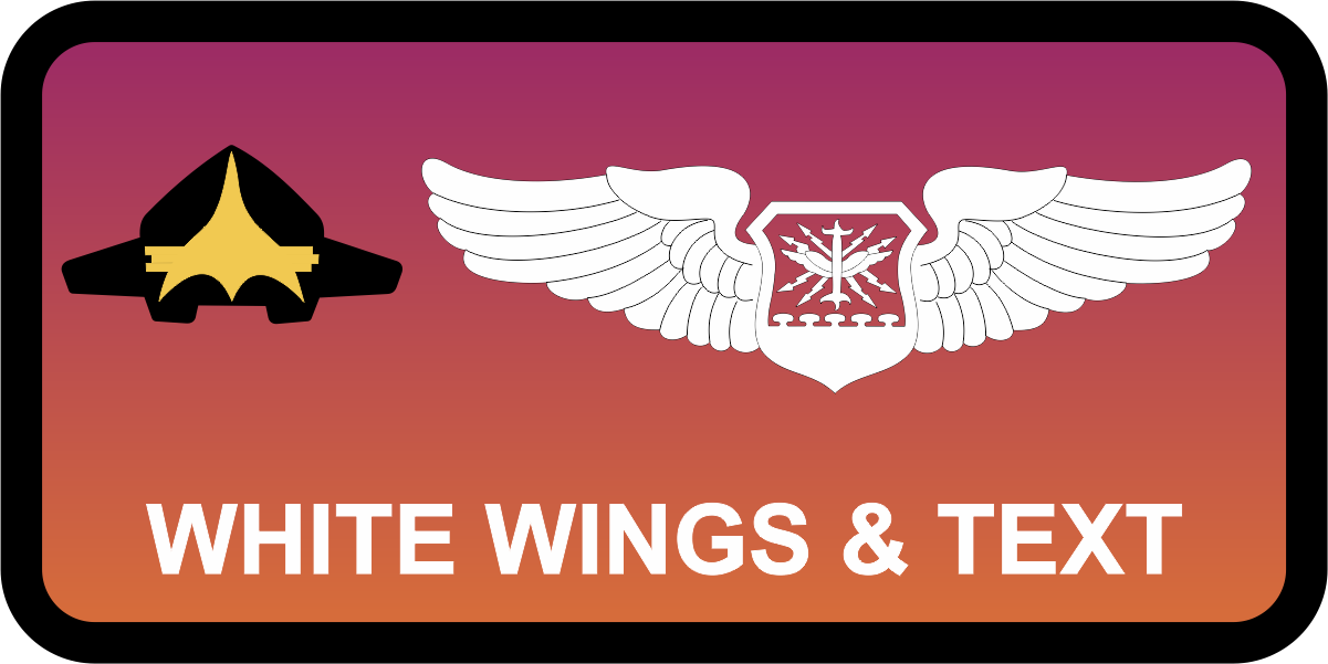 Edwards AFB - Test Pilot School - TPS Mon-Thurs Aircraft with Fade Name Tag - Pink to Orange Fade Background with Black Border, White Wings & Blue Text