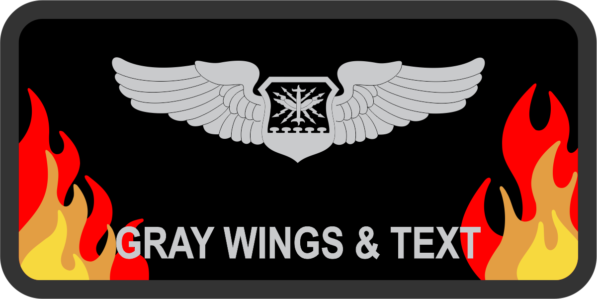 Edwards AFB - Test Pilot School - TPS Red/Orange Flame Name Tag - Black Background with Black Border, Red, Yellow & Orange Flame, Gray Wings & Blue Text