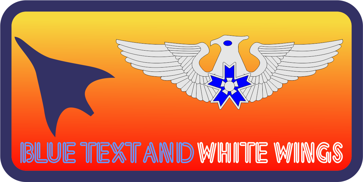 Edwards AFB - Test Pilot School - TPS Class 21B Name Tag - Red to Yellow Fade Background with Purple Border, White Wings & Blue Text - Eklektlc Font