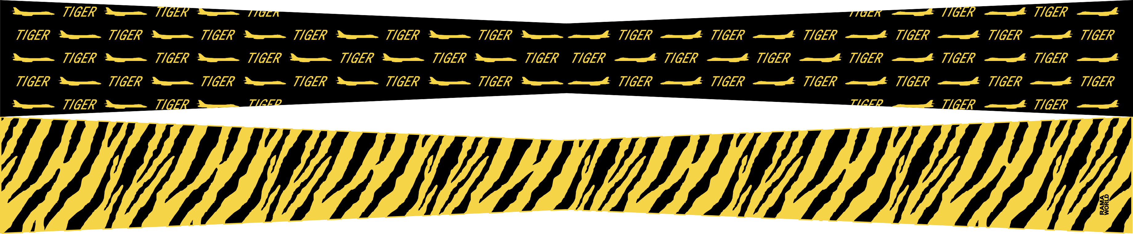 Ellsworth AFB 37 BS Flight Scarf - One half is yellow and black tiger stripes and the other half is a black body with alternating yellow B-1B aircraft and "tiger" over the body of the scarf. Size 4" x 2" x 48" - Fabric = Poly Interlock