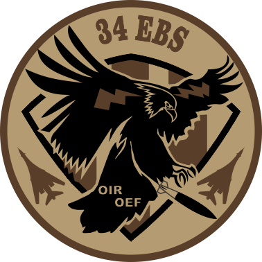 Ellsworth AFB 34th Expeditionary Bomb Squadron - Patch Desert Colors -Thunderbirds 34 EBS 3.5" with velcro