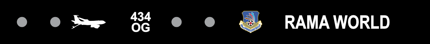 Grissom ARB 434 OG Black Bag Tag with a "KC-135" aircraft (Sideview) and "434 OG" text inbetween snaps and the "434 OG" Patch on the left side of call sign. Our standard size measures 13.5" x 1.5" when snapped.