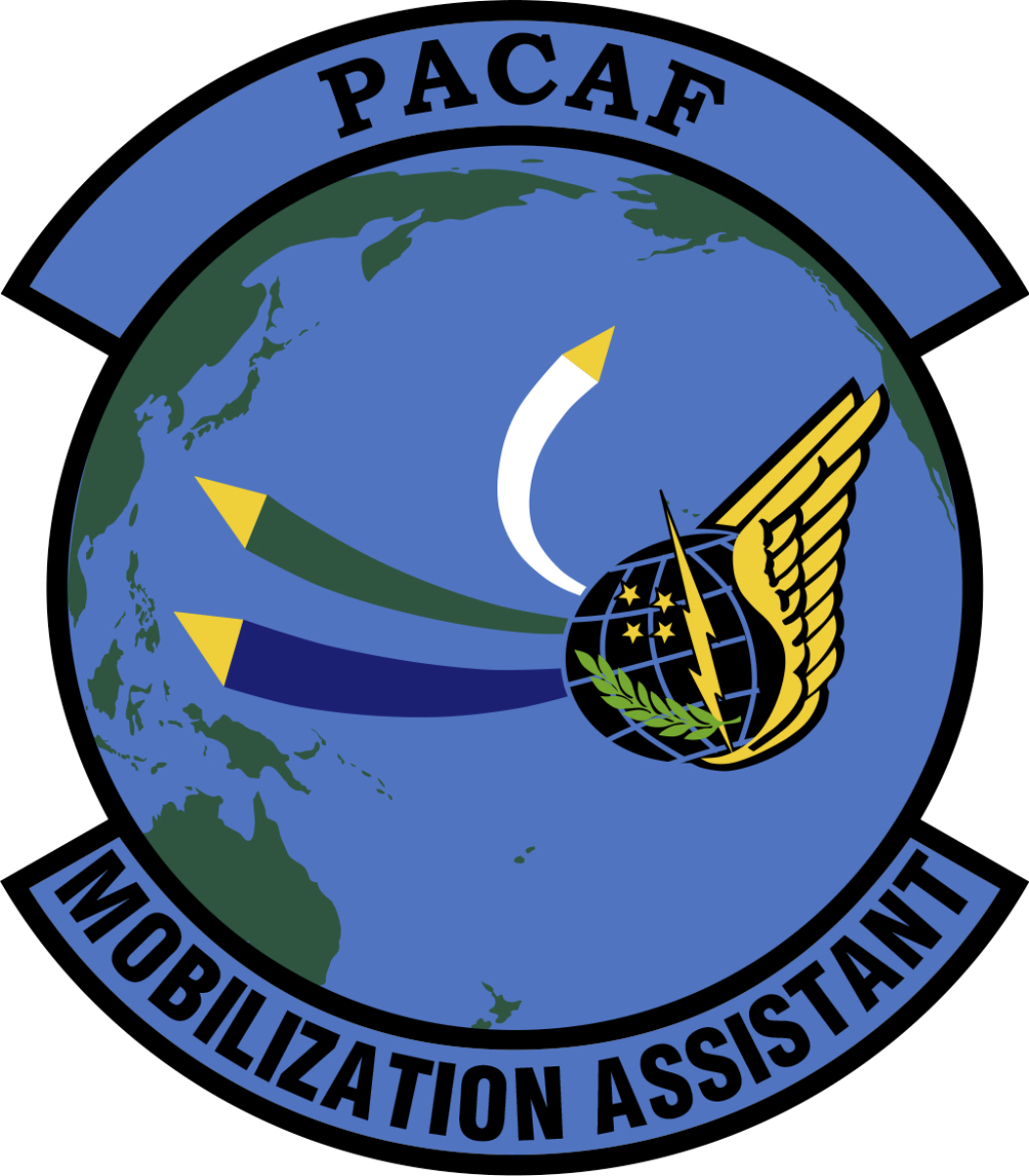 Hickam AFB HQ PACAF Mobilization Assistant - Blue Background with Globe, Wings PACAF Logo 4" with velcro