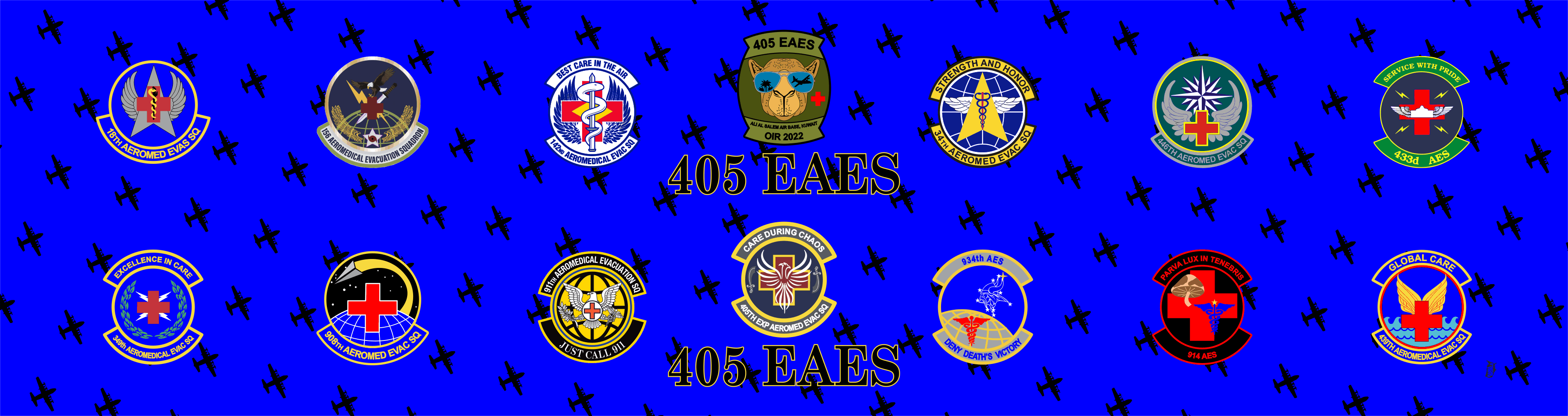 Ali Al Salem 405 EAES Flight Scarf. AF Blue Background, Multiple Patches & C-130 Aircraft Pattern. Size: 6" x 48".