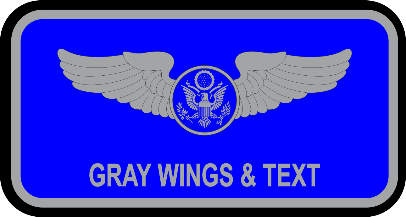 Lackland AFB 344 TRS Name Tag - AF Blue Background with Gray Border, Wings & Text - Gray 486 with Leather Backing Optional