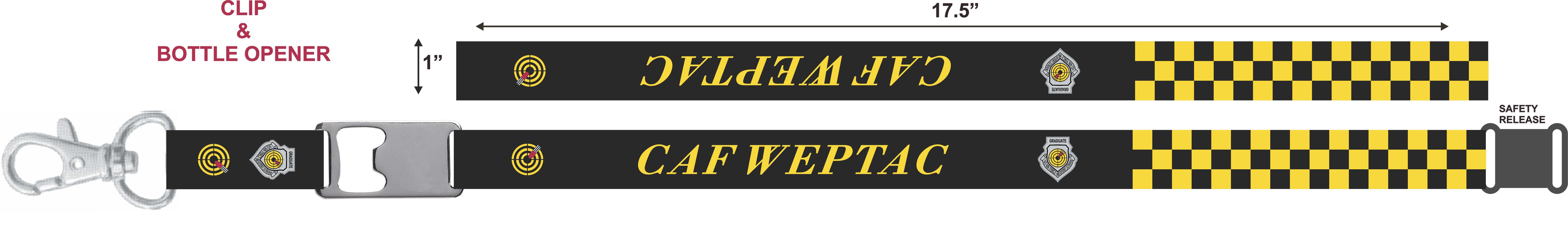 Langley AFB CAF WEPTAC Lanyard - Black and Yellow Checkerboard with Logo, Bottle Clip, Safety Clip - Lanyard