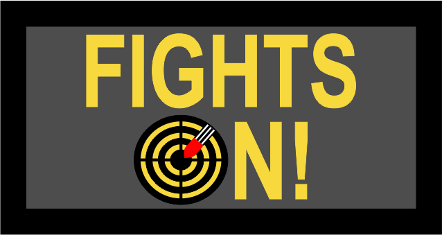 Langley AFB Fights On! with Bulleyes, Gray Background, Black Border, Yellow Text, Pocket Tab 2"