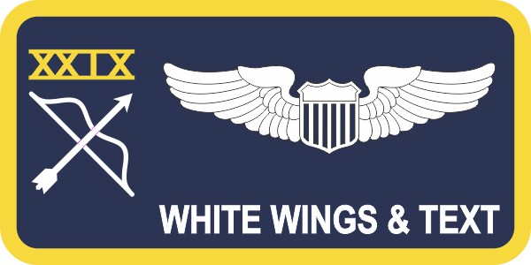 Little Rock AFB 29 WPS- Navy blue background, yellow border, white wings and text with a White Bow and Arrow logo