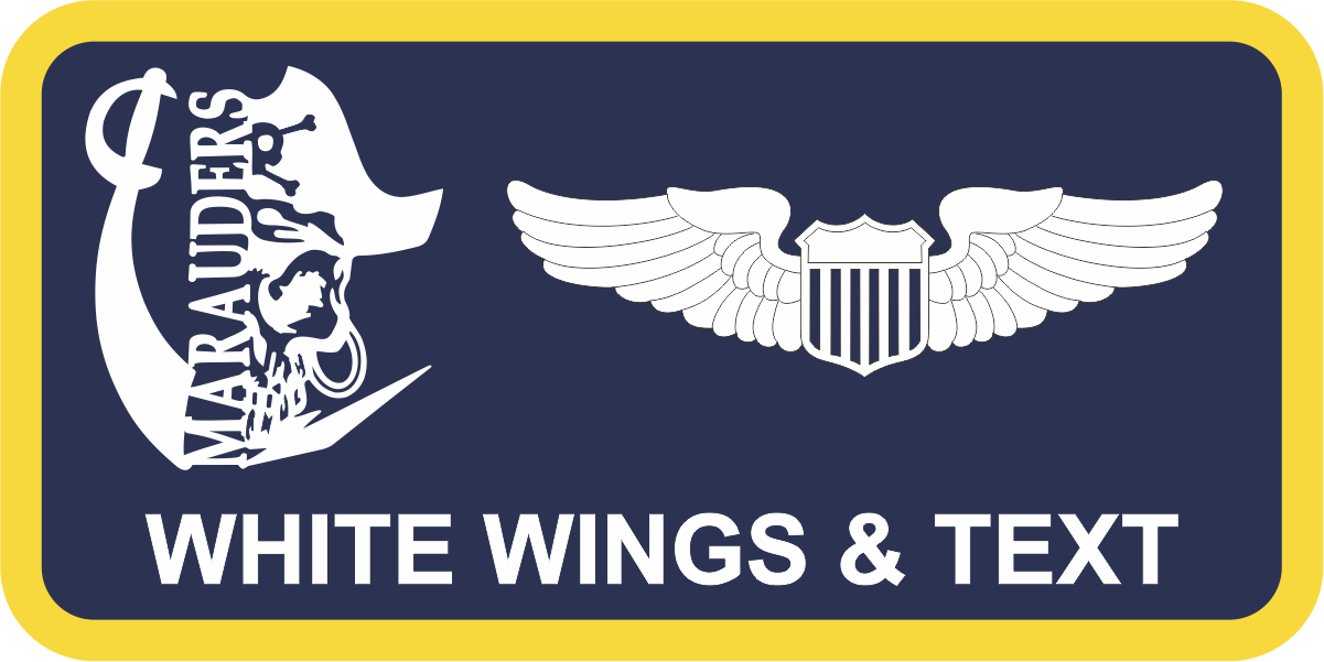 MacDill AFB 6 OSS Marauders Name Tag - Navy Background, Yellow Border, 6 OSS Marauders Logo, White Wing & Text