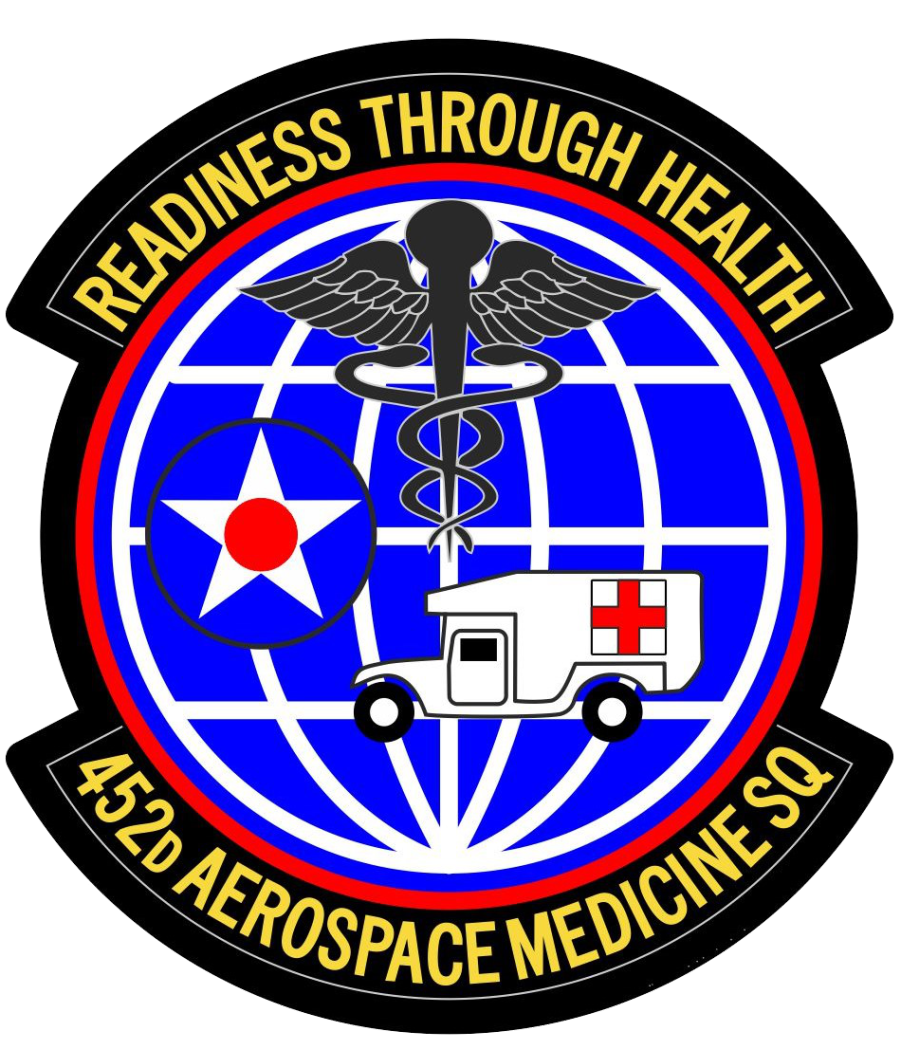 March ARB 452 AMDS - Readiness Through Health 452D Aerospace Medicine Sq Full Color 3.5" with velcro