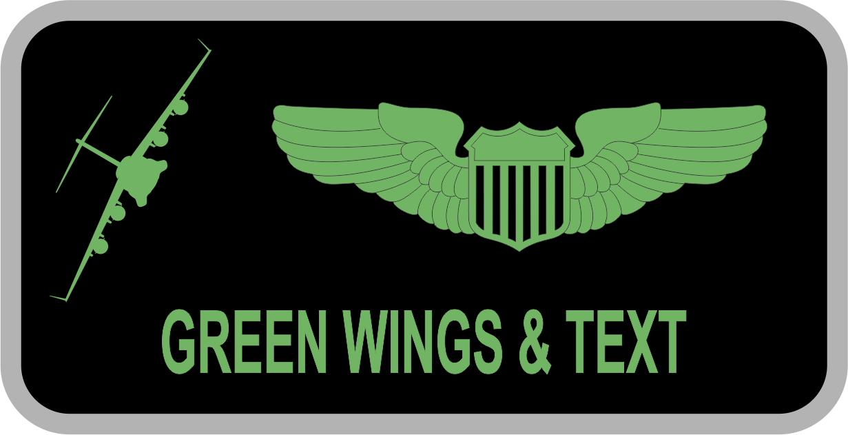 McChord AFB 62 OG Demo Team Name Tag: Black background, Grey border, Green wings, and text. Includes a profile view Green C-17 on the top left.