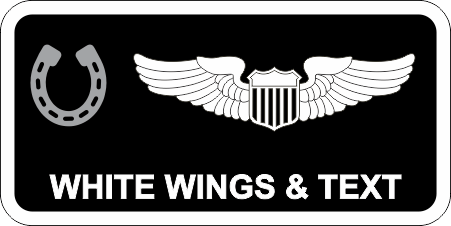 McChord AFB 8 AS- Horseshoe Name Tag - Black Background, White Border, White Wings, and text, Gray & Black Horseshoe