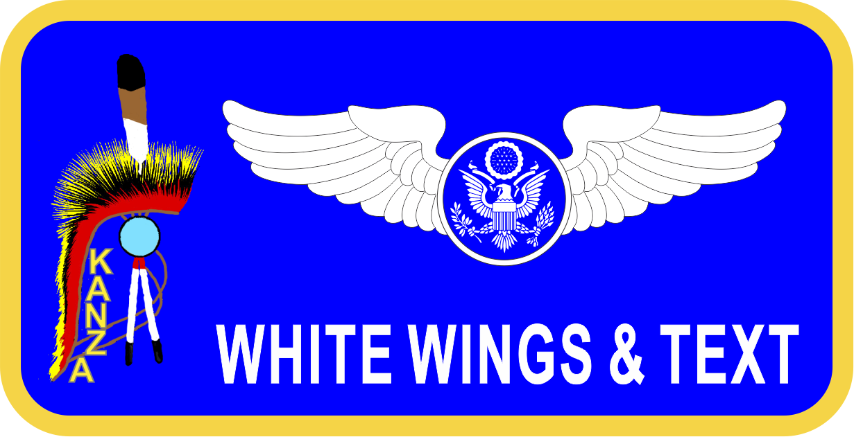 McConnell AFB 18th Air Refueling Squadron- AF Blue Background, Yellow Border, White Wings and Text with a Kanza Head-Dress Logo