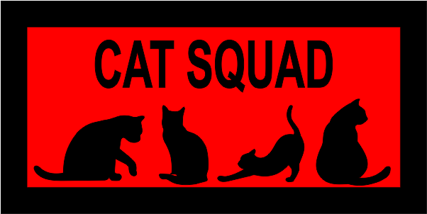 McConnell AFB 350 ARS - Cat Squad Pocket Tab 2" with velcro - Red Background with Four Black Cats, Black Border