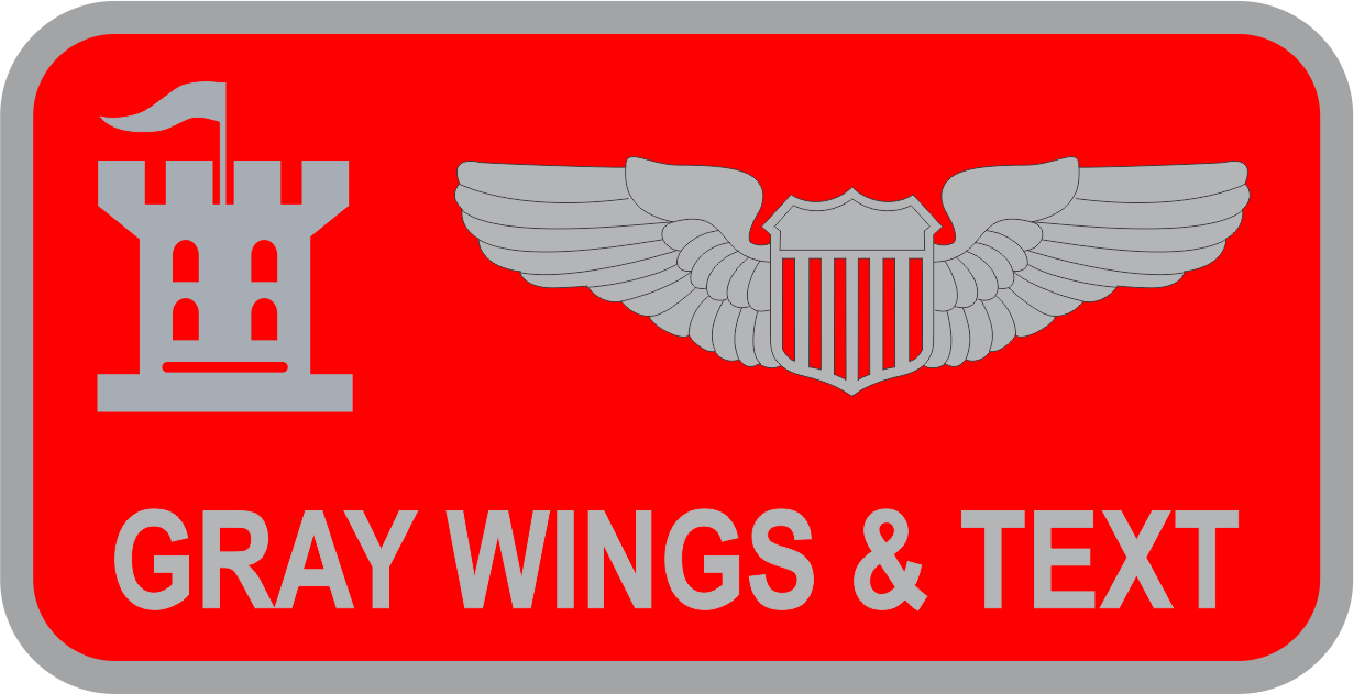 McConnell AFB 924 Air Refueling Squadron- Red Background, Gray Border, Gray Wings and Text with a Gray Castle Logo