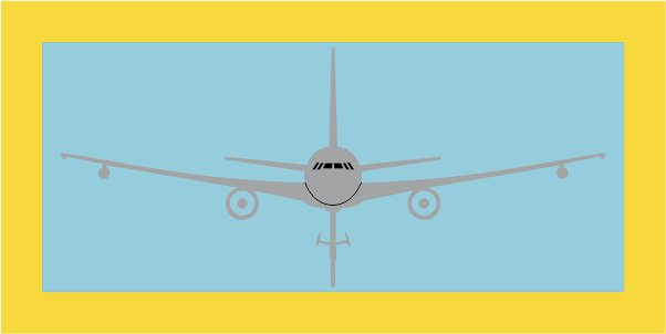 Lt Blue Background, Yellow Border, Gray KC-46 with Boom Down