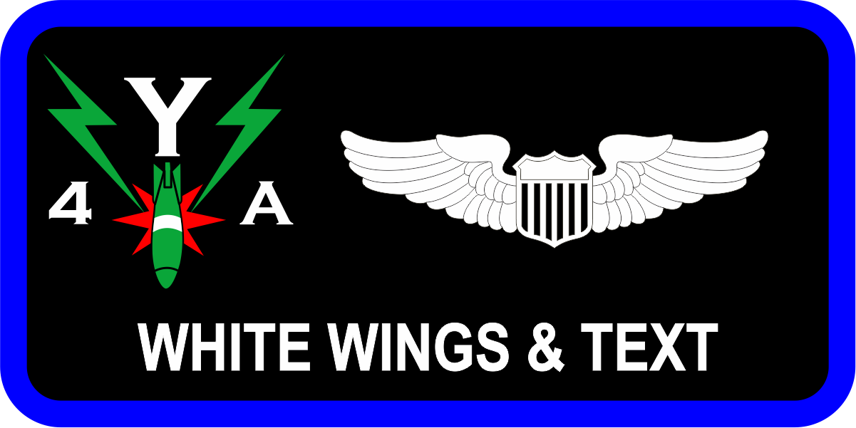 TT-510 Black Twill, FF368 Blue Border, PF900 White Wings & Text