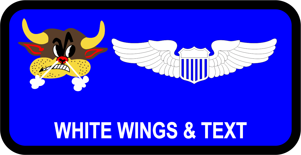 McGuire AFB 6 AS - AF blue background with a black border, Bull head logo with white wings and text.