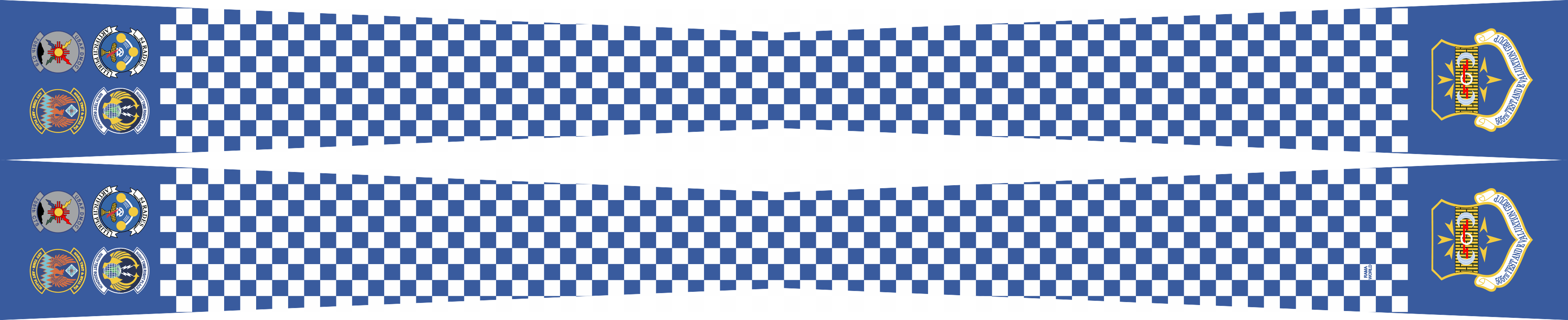 Nellis AFB 505 TEG Flight Scarf - White and blue checkered pattern body with different patches on each end. size 4" x 2" x 48"