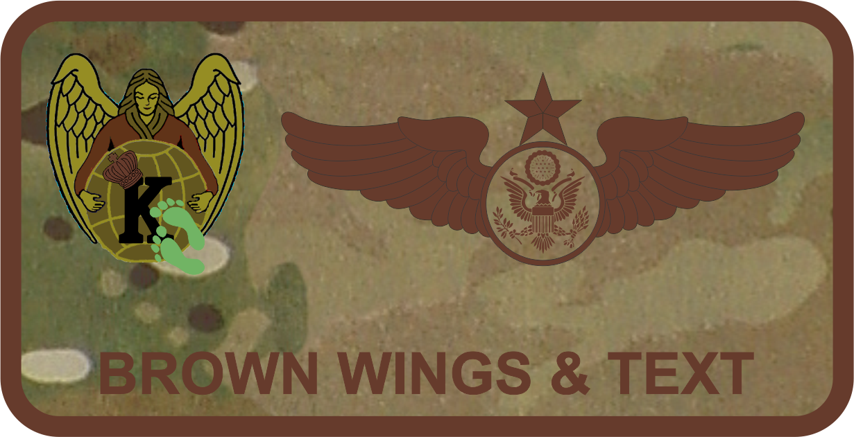 Patrick AFB 39 OG - OCP Background with Brown Border, Brown Wings & Text with Angel, K Crown and Green Feet Logo