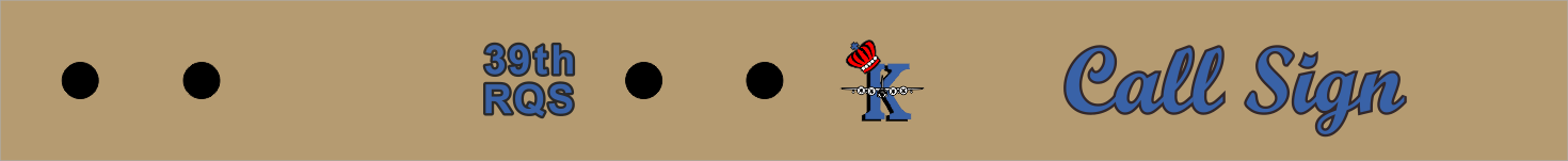 Patrick AFB 39 RQS Tan Bag Tag With "39th RQS" Text In-Between Snaps & "K Crown" Logo on the left of Name. Our standard size measures 13.5" x 1.5" when snapped.