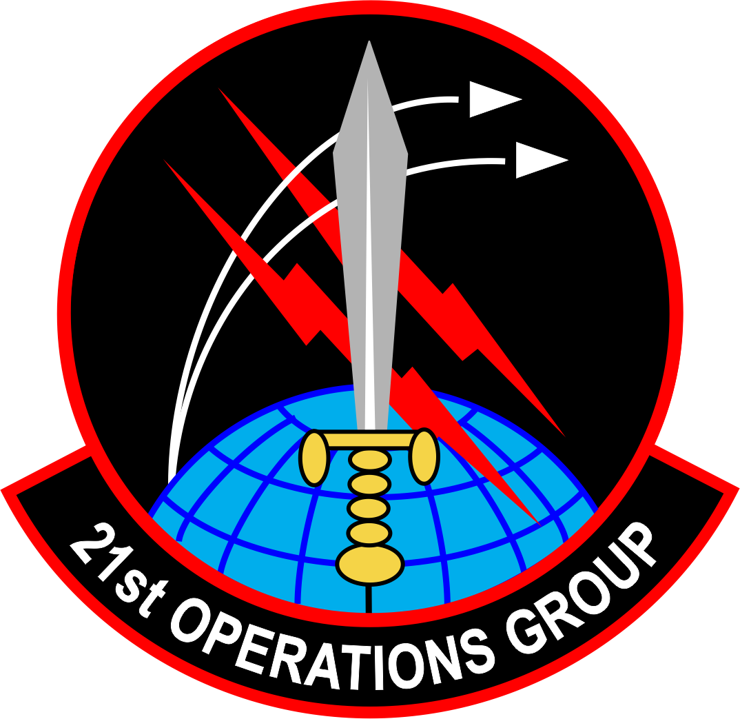 Peterson AFB 21st Operations Group 3.5" Full Color with velcro - Globe with Gray Sword, Red Lightning Bolts