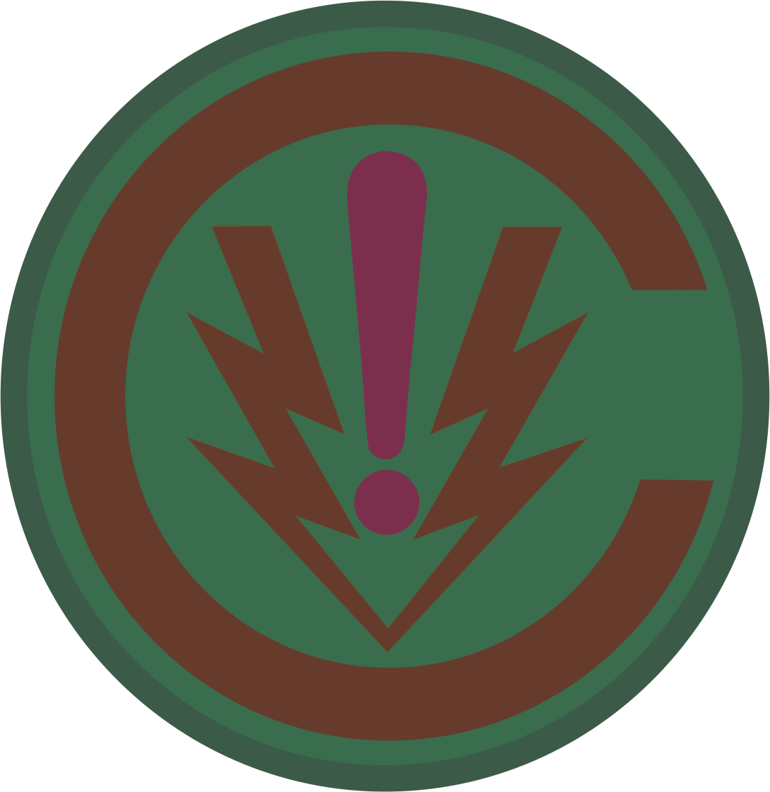 RAF Mildenhall 352 SOW - Green and Brown with Maroon Exclamation Mark, Brown Lightning Bolts Patch 3.5" with velcro