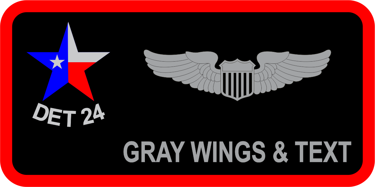 Randolph AFB 19 AF Det 24 Name Tag - Black Background, Red Border, with Texas Star Logo, DET 24 Under Star