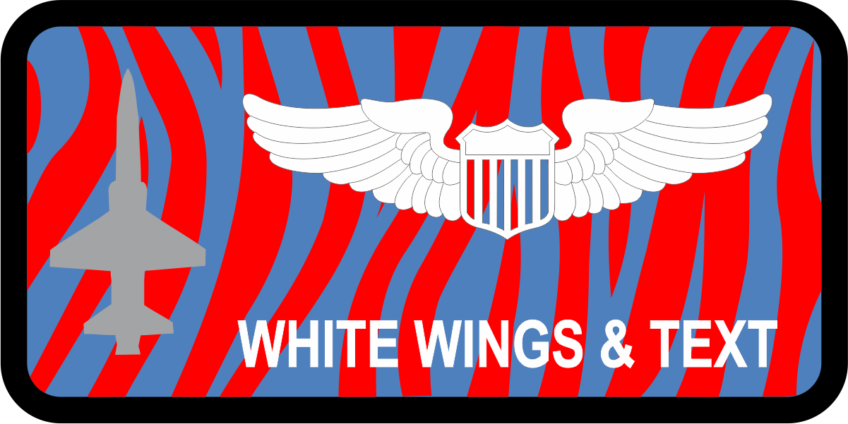 Randolph AFB 19 AF Det 24 Name Tag - Blue & Red Tiger Stripes, Black Border, Gray T-38 Aircraft