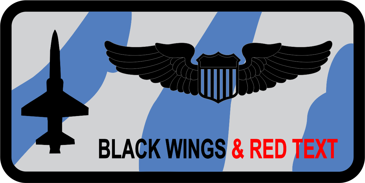 Randolph AFB 19 AF Det 24 Name Tag - Gray Background, Blue Tiger Stripes, Black Border, Black T-38 Aircraft, Black Wings & Red Text