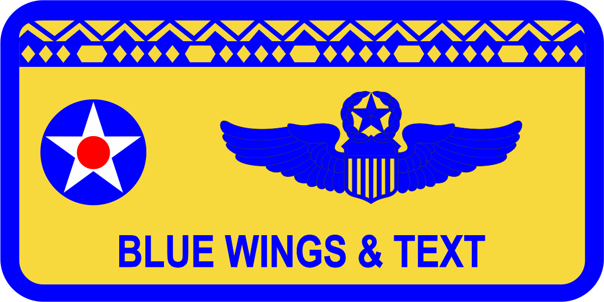 Randolph AFB 12 FTW Name Tag - AF Yellow Background, Blue Border, Blue Wings & Text with Optional Leather Backing
