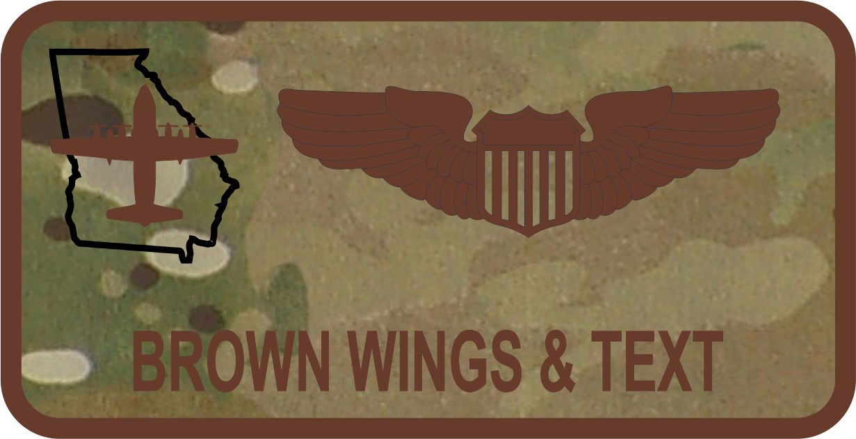 Robins AFB 339 FLTS- OCP background, C-130 aircraft over the outline of Georgia, spice brown wings and text.
