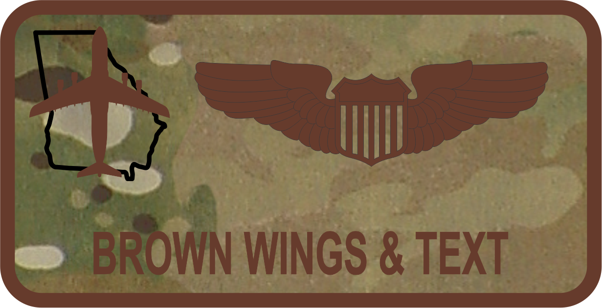 Robins AFB 339 FLTS: OCP background, Spice brown border wings and text outline of Georgia state with C-5 aircraft