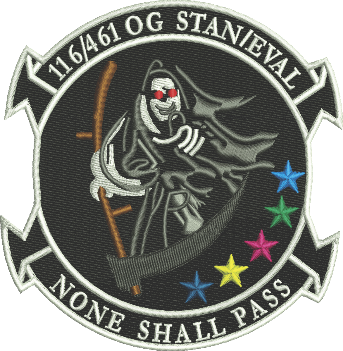 Robins AFB 116/461 OG STAN/EVAL - None Shall Pass - Grim Reaper with Five Stars Full-Color Patch 4" with velcro